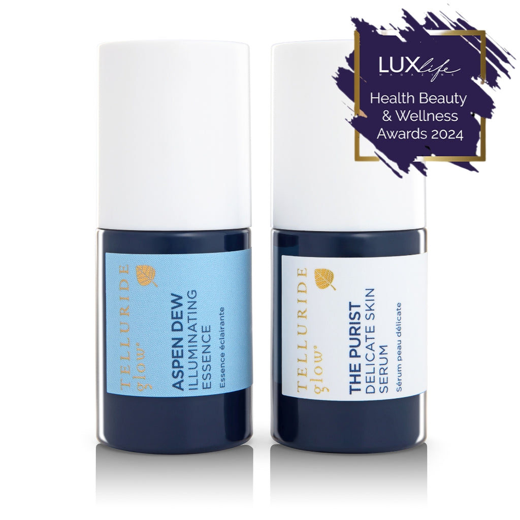 Aspen Dew Illuminating Essence: This essence is a deeply hydrating retinol alternative that smooths, brightens, and firms your skin in one step. It contains Niacinamide (B3), phytoceramides, aloe vera, micro-molecular hyaluronic acid, and protective & rejuvenating alpine botanical actives.