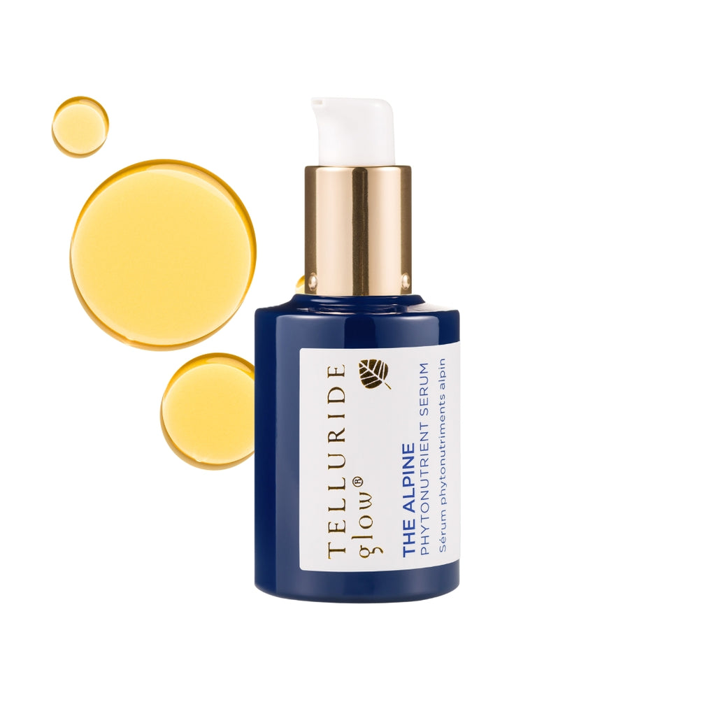 The Alpine Phytonutrient Serum: This luxurious botanical serum fortifies, clarifies, and moisturizes. It absorbs instantly and diminishes the appearance of fine lines and wrinkles, leaving skin remarkably smooth, supple, and radiant. It contains rosehip, sea buckthorn, plum, moringa, frankincense, arnica, plant-based vitamin C, and alpine botanical adaptogens.